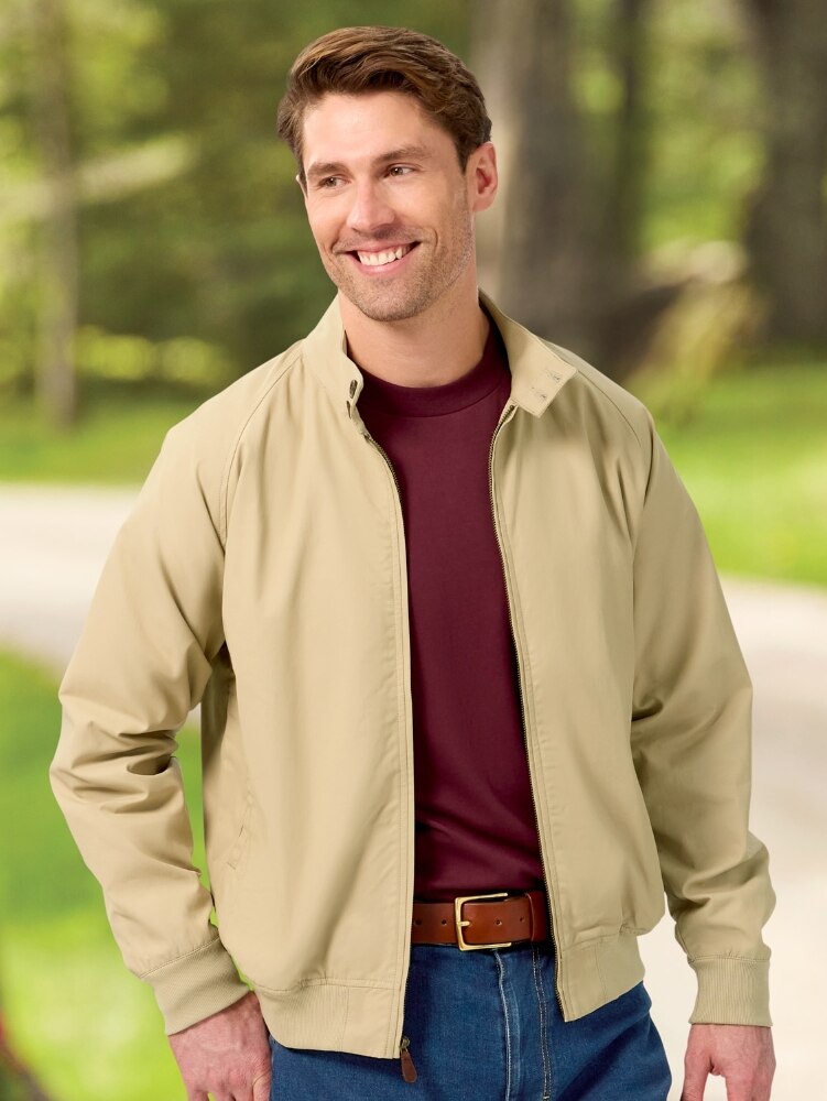 This windbreaker jacket is lightweight layer with a casual bomber jacket style and relaxed fit, making it a perfect for three-season wear. It features a water-repellent shell that's soft, durable and offers protection from wind and light rain and soft cotton lining for added warmth.