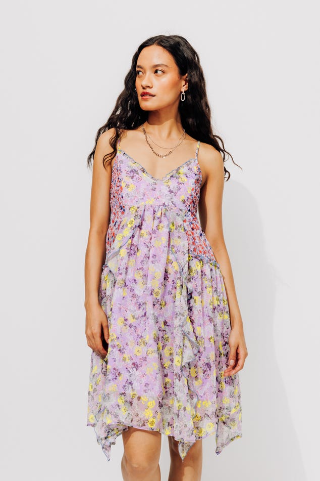 Détails à foison & tentation forte ! Cette robe courte s'inspire de la lingerie pour romantiser nos allures ensoleillées ! On craque sur la délicatesse des petits volants et l'esprit rétro des smocks élastiqués. Voile léger, doublure. Motifs imprimés all over. Coupe courte et évasée. Bretelles ajustables. Décolleté V devant. Dos droit smocké. Cette robe à fleurs contient des fibres recyclées.