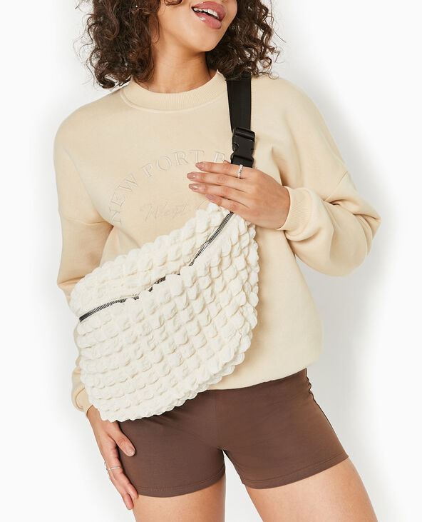 Sac banane XXL en tissu texture gaufre - Ecru