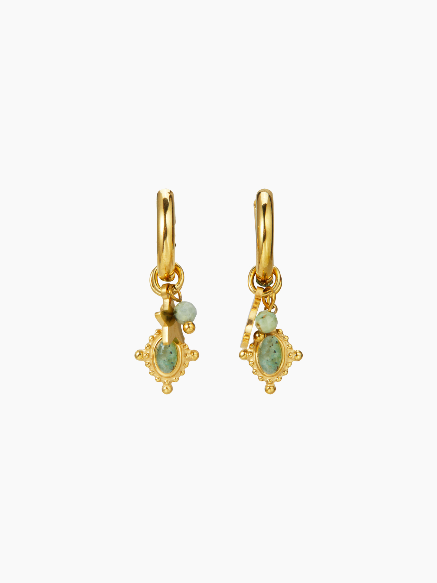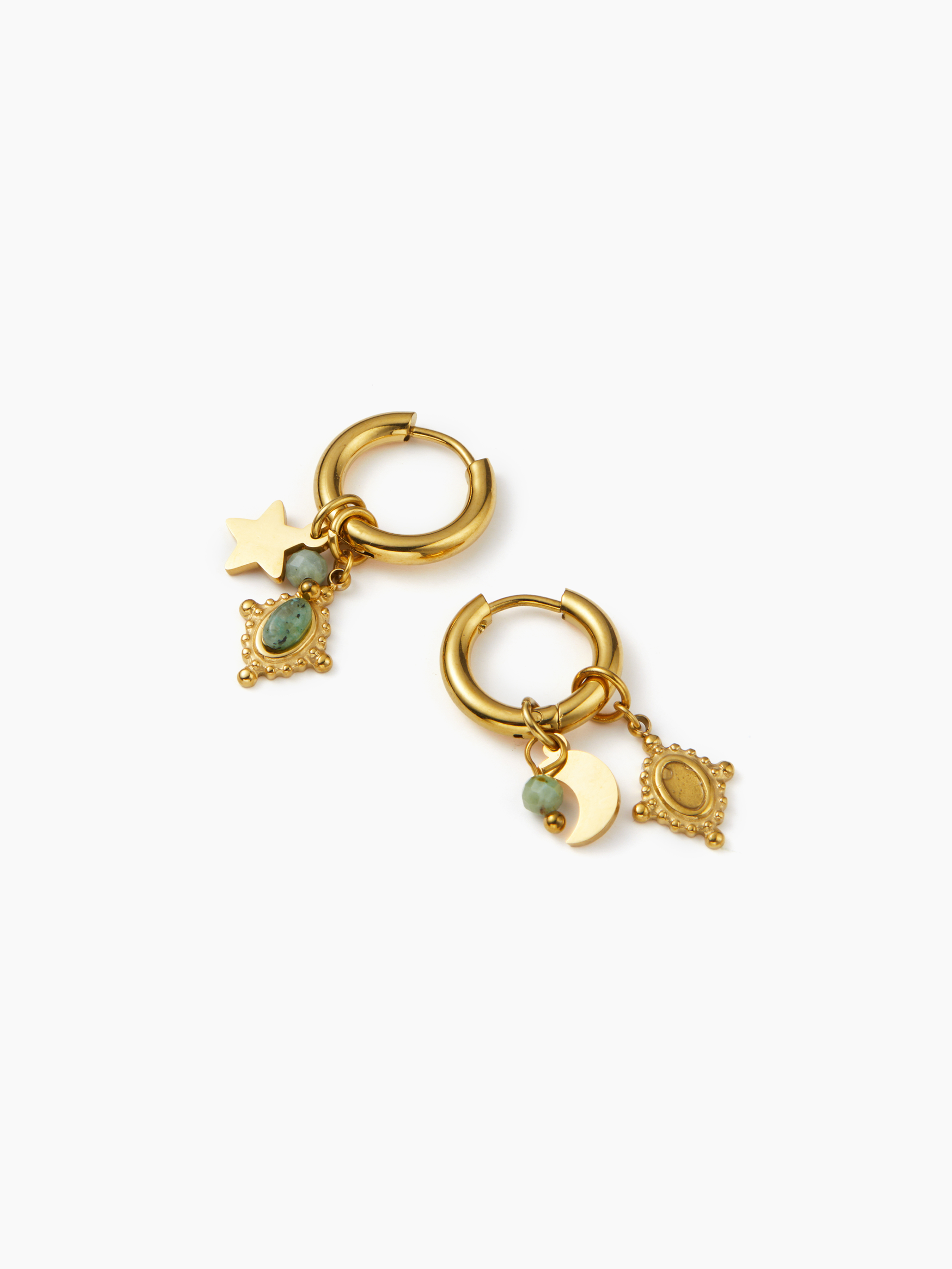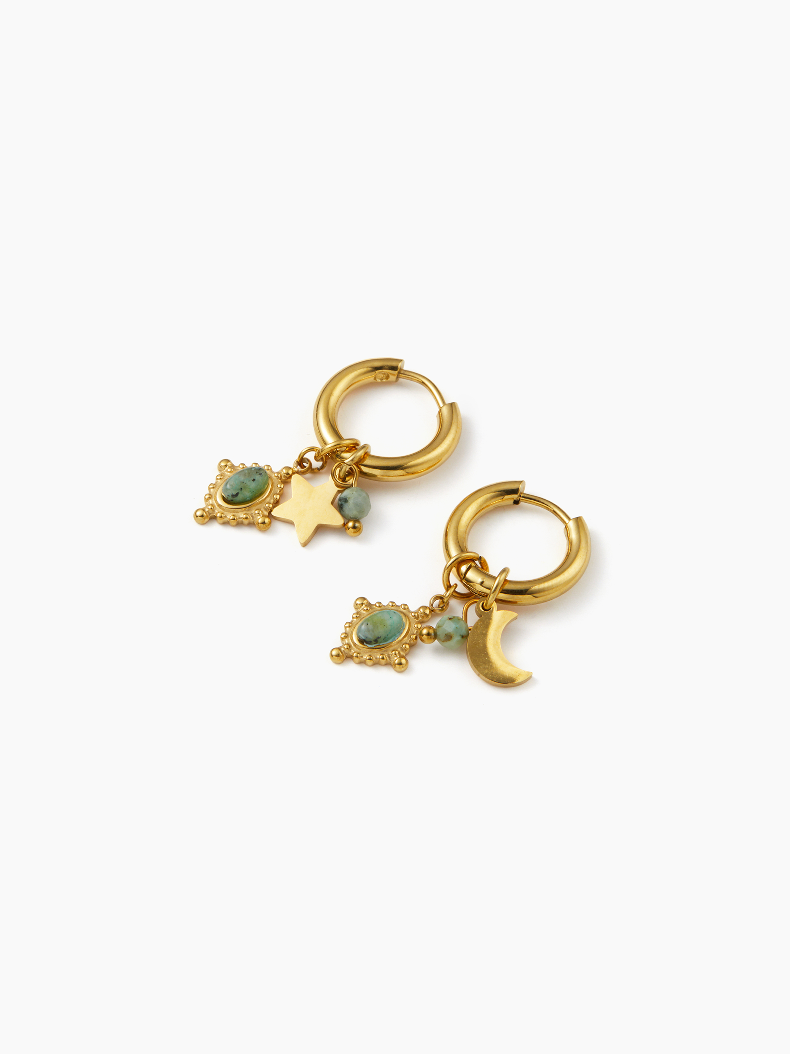 STAR & MOON & TURQUOISE 18K GOLD PLATED STAINLESS STEEL DROP EARRINGS
