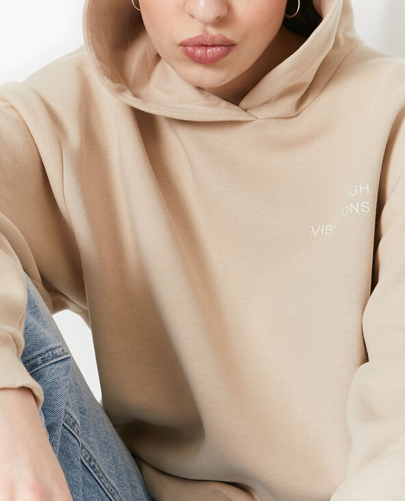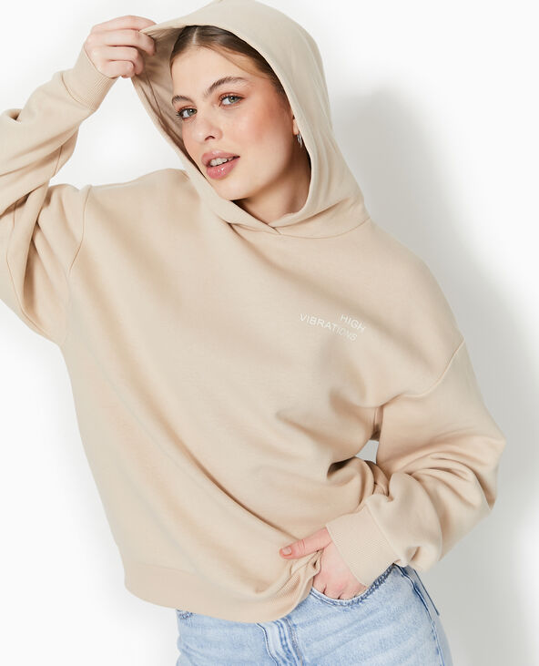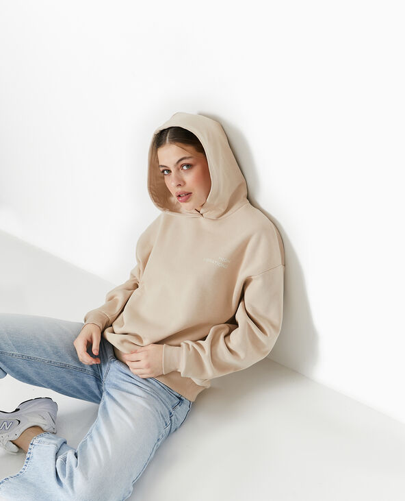 Sweat capuche avec print devant et dos - Beige