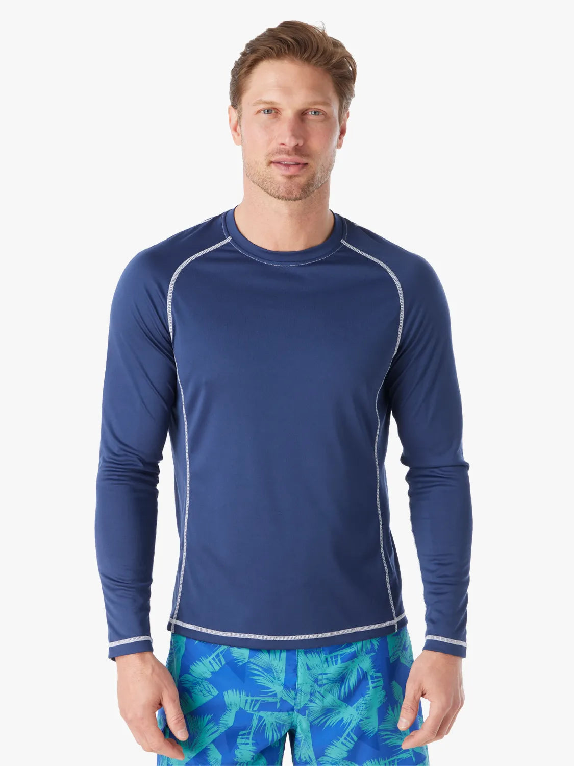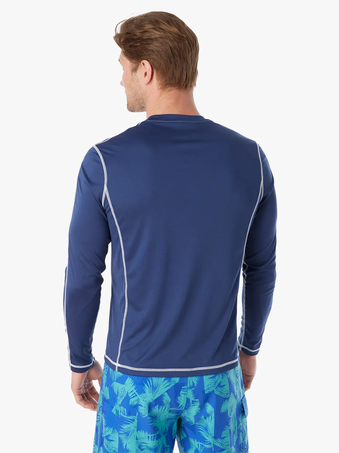 Our rashguard, made in 100% recycled polyester, was designed to keep you unbelievably comfortable while protecting you with UPF 50. We worked on this deceptively simple sustainable sun shirt for more than a year to get every detail right—from the easy standard fit to the sleek fabric that stays smooth and won't catch on skin or hair. Raglan sleeves in contrast stitching offer a sporty, retro feel.