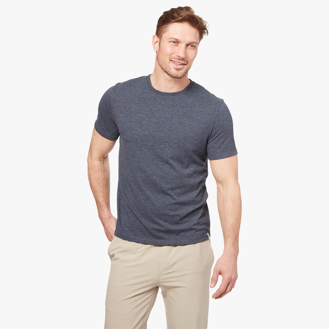 The Kismet Tee is made from the finest cotton in the world and blended with our custom recycled polyester. The premium tee is softer than anything you have ever felt and has a trim and presentable fit. This is a perfect everyday tee and works well in most occasions. It is lightweight, but still has some structure to hold its shape. It looks elevated enough to wear out to dinner, and comfortable enough to sleep in.