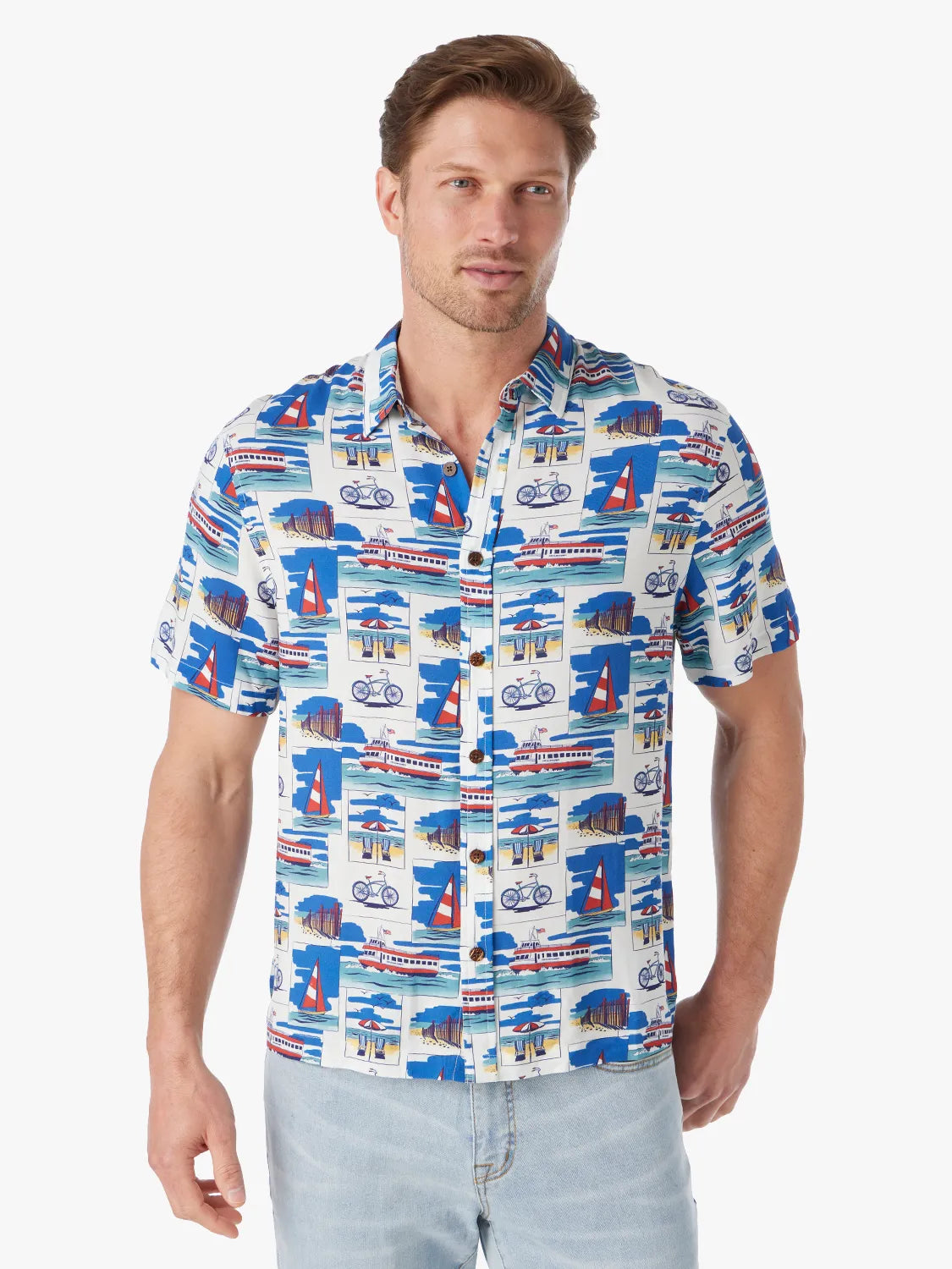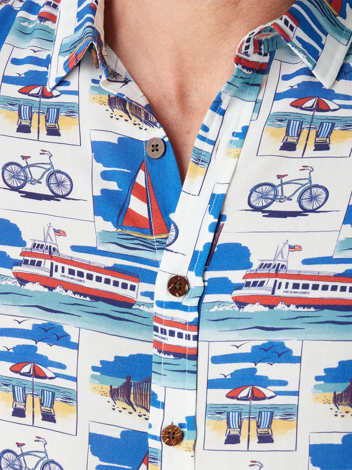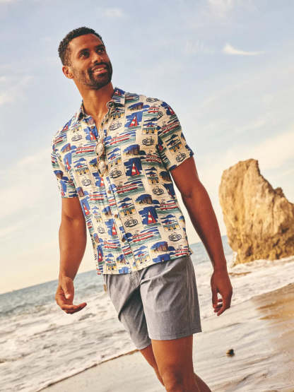 We reimagined this classic getaway style in sustainable viscose to create the ultimate resort shirt. The Marina Shirt's breezy fit and ultrasoft Lenzing Ecovero fabric made from wood fibers will make you feel like you're on vacation, even if you're just in your backyard. Inspired by our dad's go-to resort shirt, this eco-friendly update with a straight bottom hem and coconut buttons is always ready to relax.