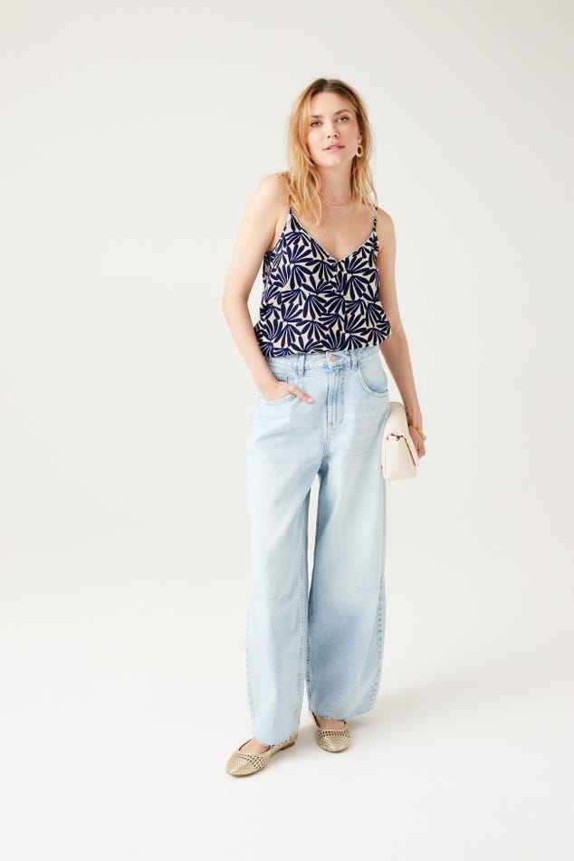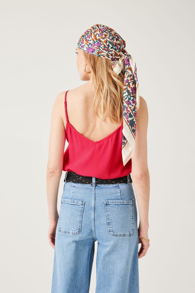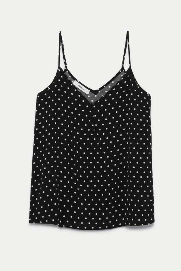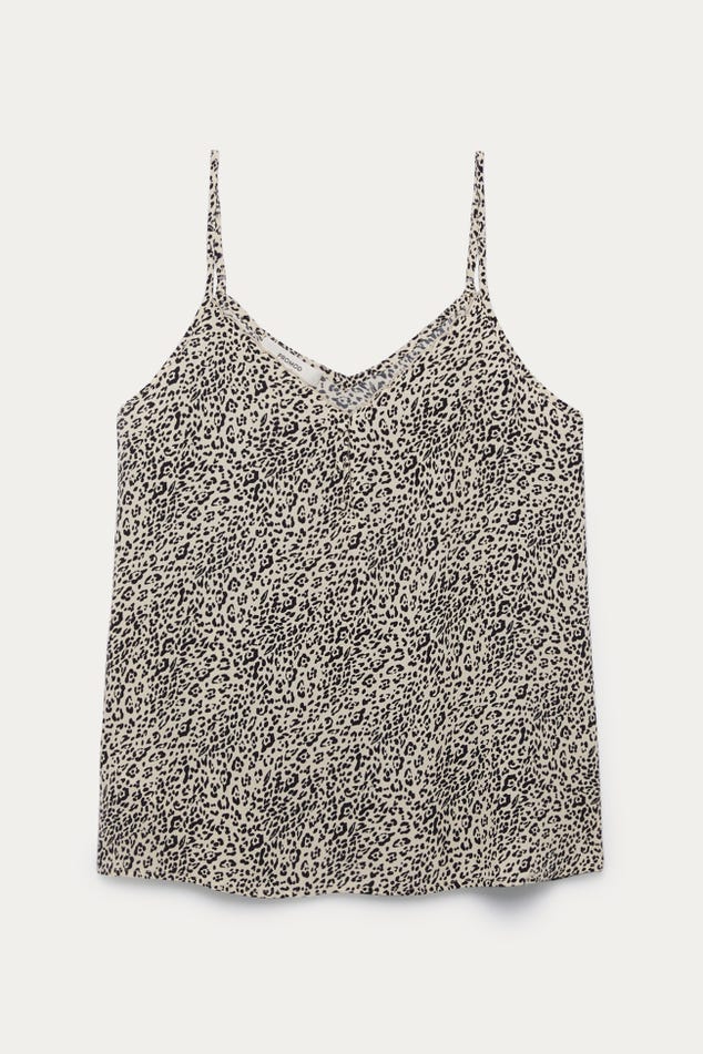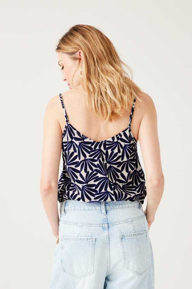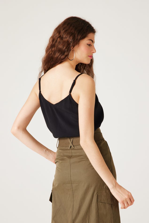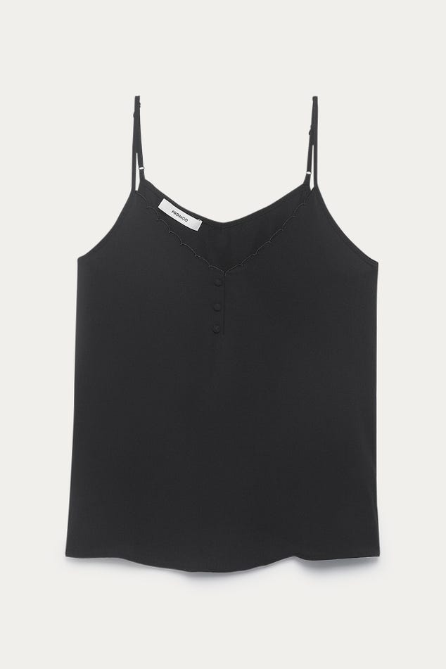 Ce caraco a un joli sens du détail : un décolleté V à bords festonnés devant, des petits boutons enrobés, de fines bretelles ajustables... On aime aussi beaucoup le toucher crêpé. Coupe droite. Décolleté V devant et dos. Base arrondie. Finition piquée. Cet article contient de la viscose issue de pulpe de bois provenant de forêts gérées.