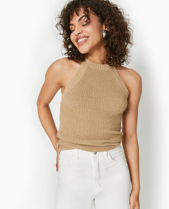 Top emmanchures américaines en maille - Beige