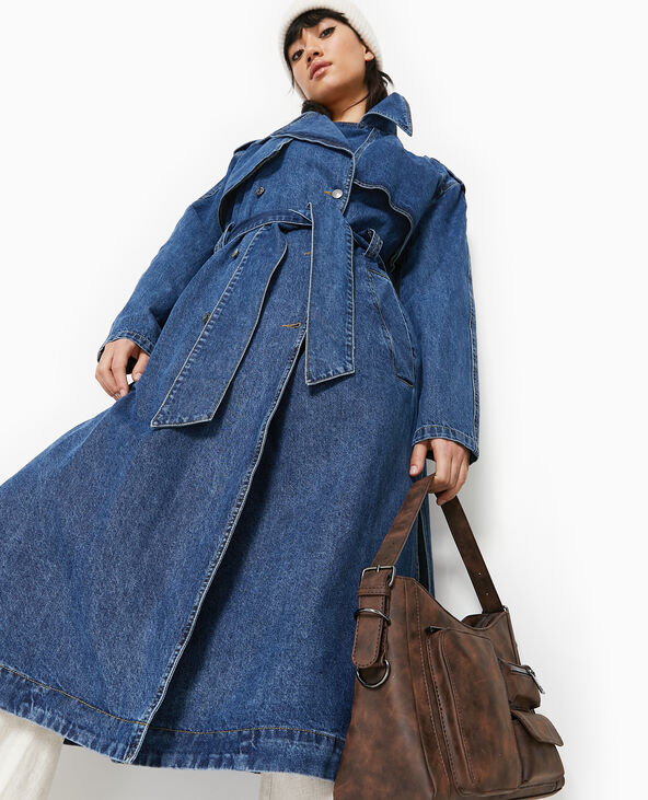Trench long en jean - Bleu