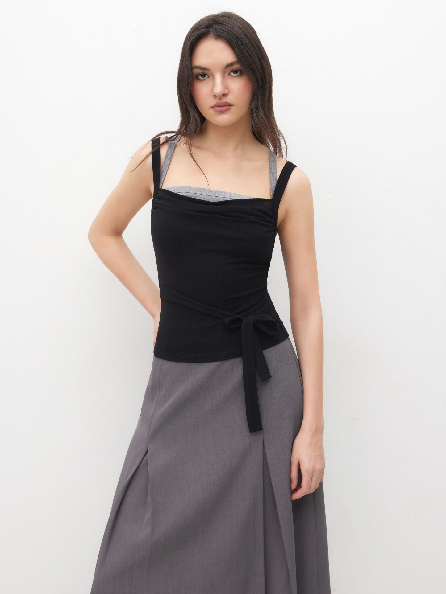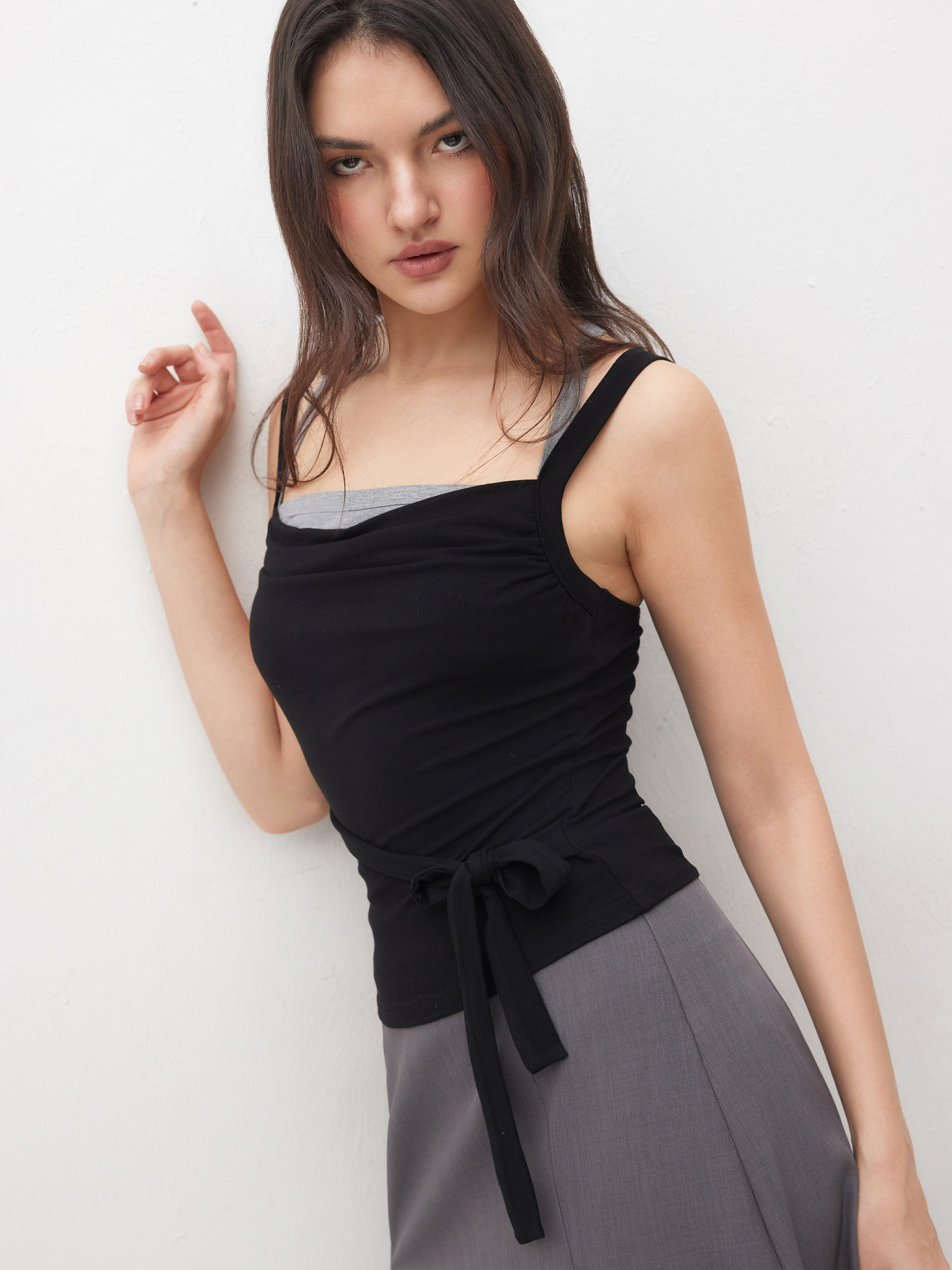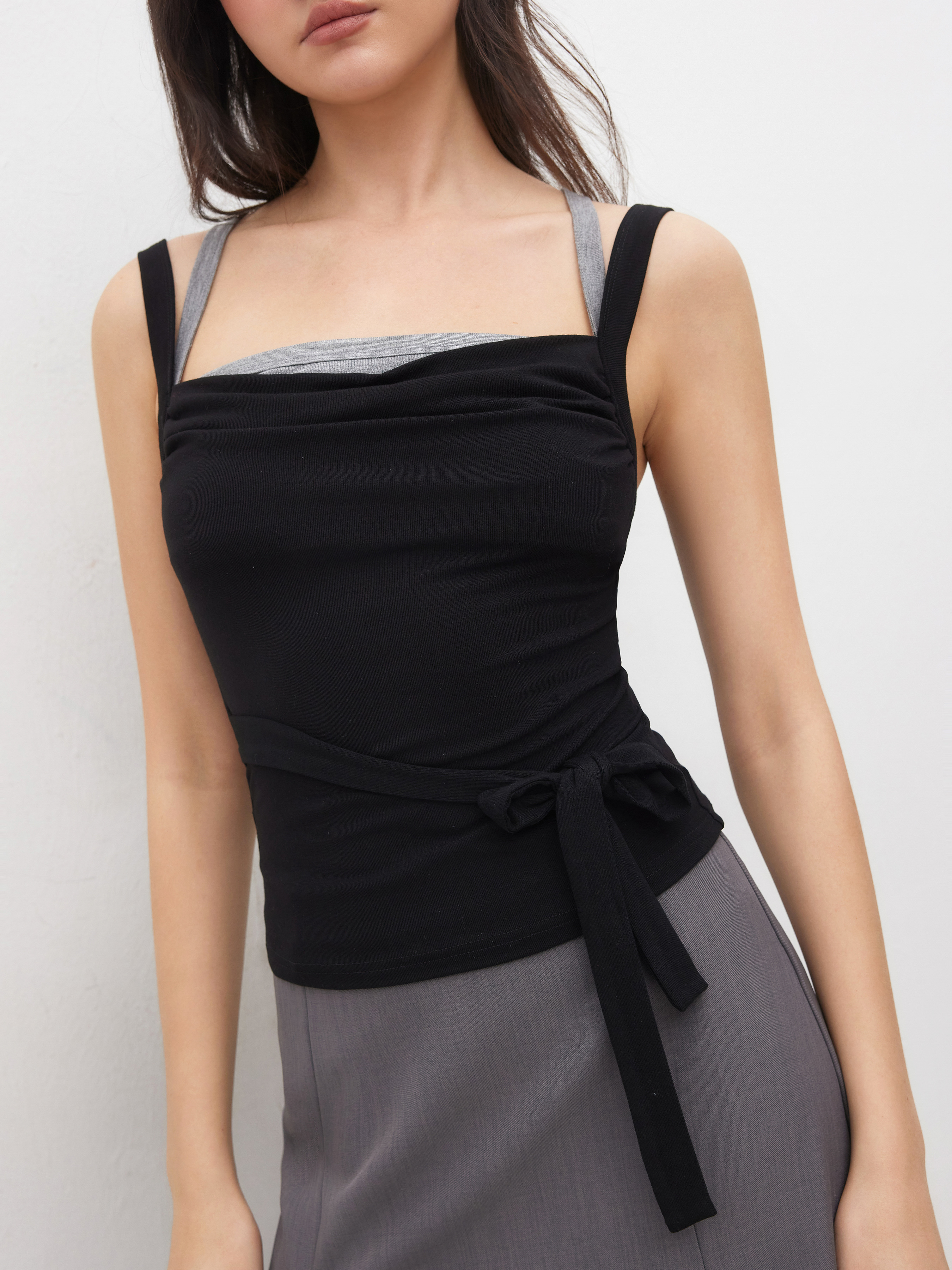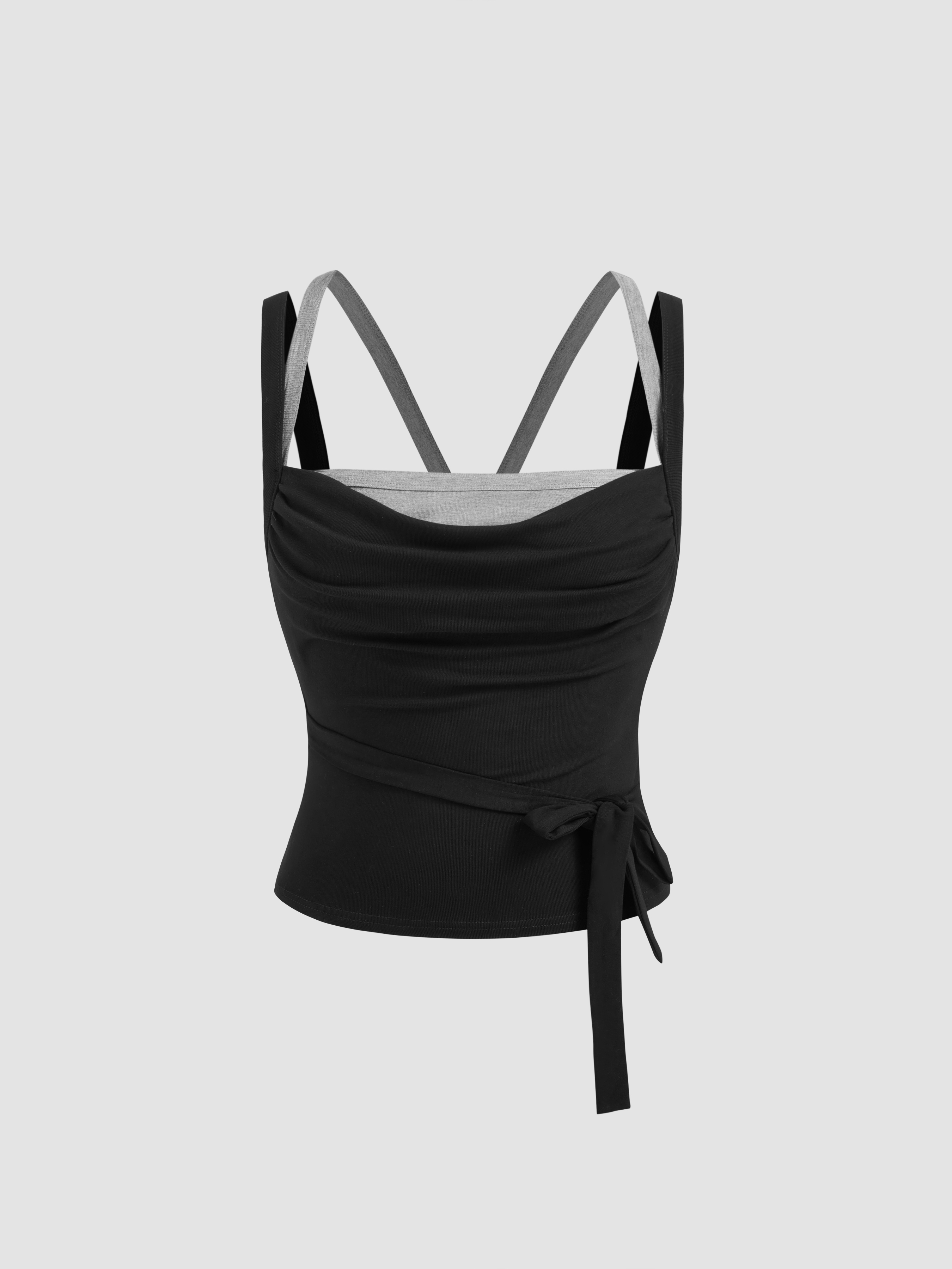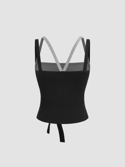 TWO TONE SQUARE NECK KNOTTED CAMI TOP