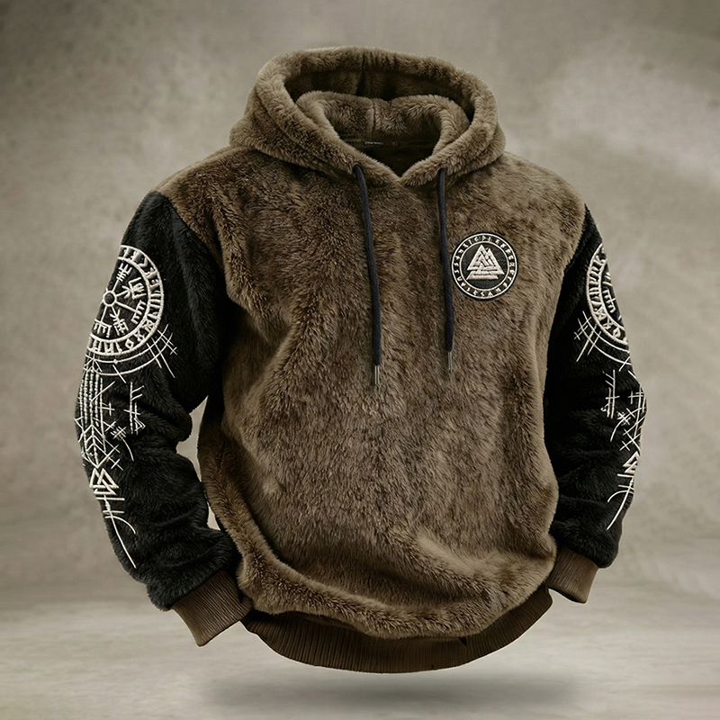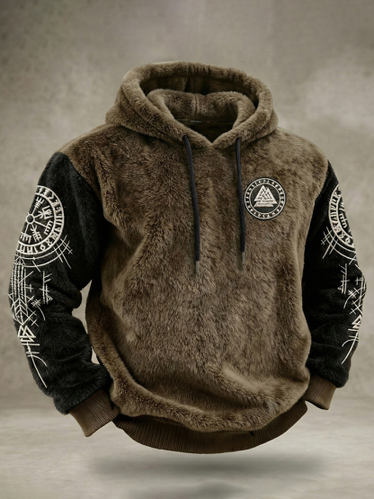 VChics Men's Vintage Viking Symbols Art Cozy Flannel Hoodie
