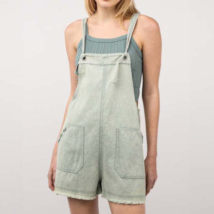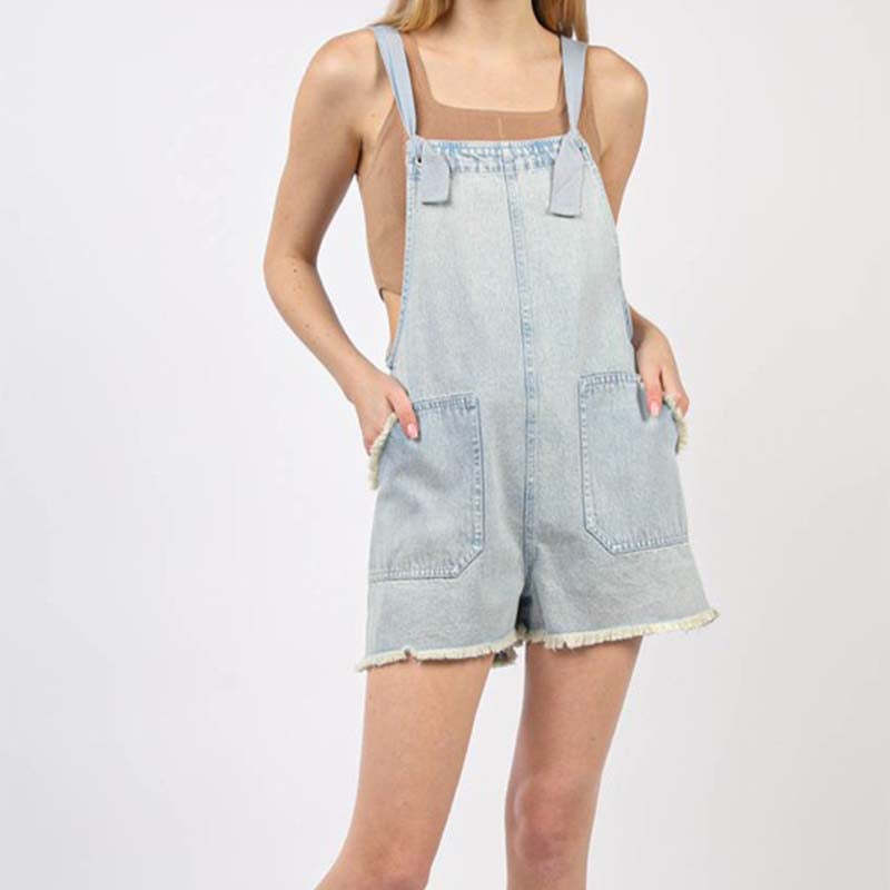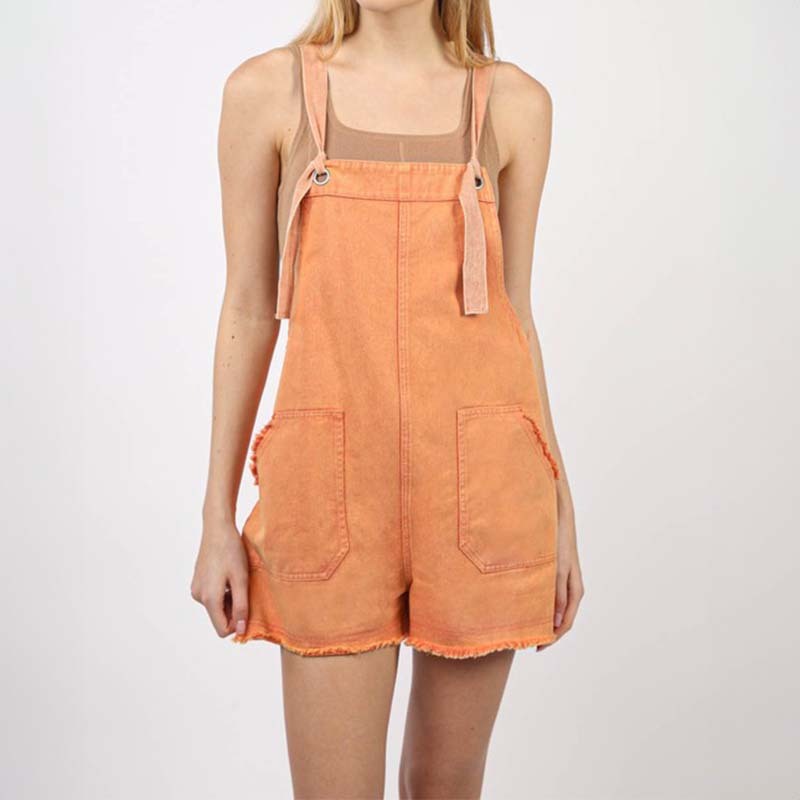 Raw Edge Denim Garment Dye Romper