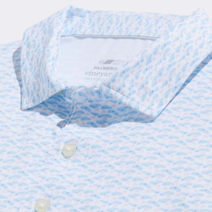 · Made with brrrº fabric for immediate and continuous cooling, active wicking and rapid drying · Odor resistant · UPF 50 · Built-in stretch · Classic, relaxed fit · Reinforced collar stand for a clean look · Hidden button on inner collar keeps it in place · Detailing on the inner collar and back neck · Small side vents tailored for movement · Whale dot on back neck yoke · Imported