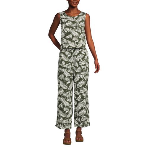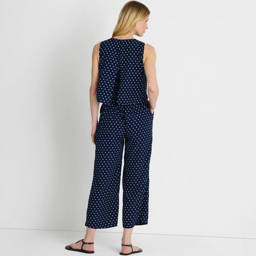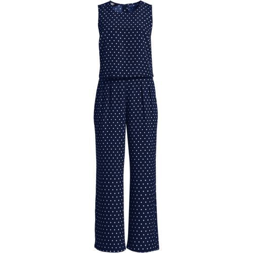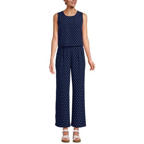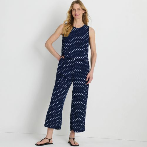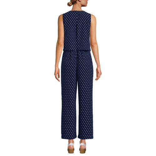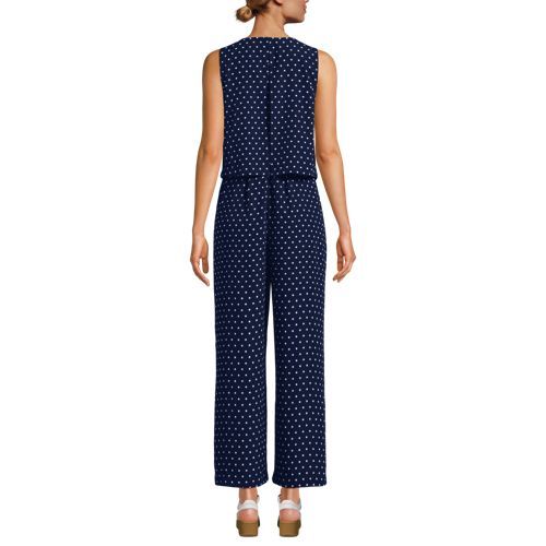 An easy option for looking pulled together in seconds, this sleeveless crepe jumper features a flattering crew neck style and a waist-length outer shell with back slit that camouflages your middle. The inner shell zips in the back with a hook and eye closure, while the wide leg pants have on-seam pockets for storing essentials. Perfect with a jean jacket and a pair of sneakers for a casual look but also works with heels and a statement necklace for a dressier occasion.