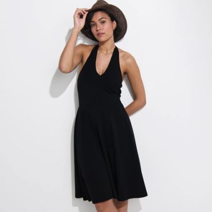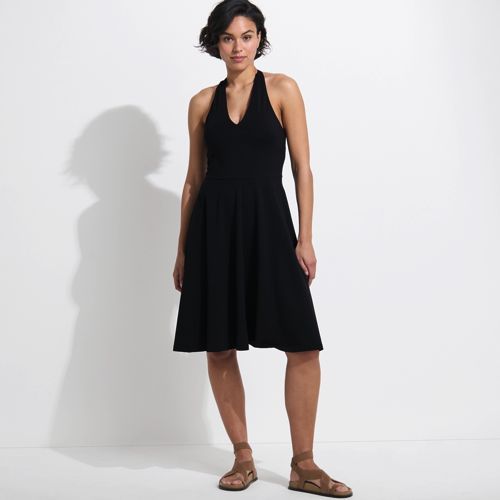 The most impressive thing about this dress is that you can go from one to done with a single piece. Just choose your silhouette — like this knee length halter neck dress — slip it on and go in style. Plus, it’s made with a soft cotton blend fabric and a hint of stretch so it’s comfortable to wear all day. And the attached shelf-bra adds a little extra support.