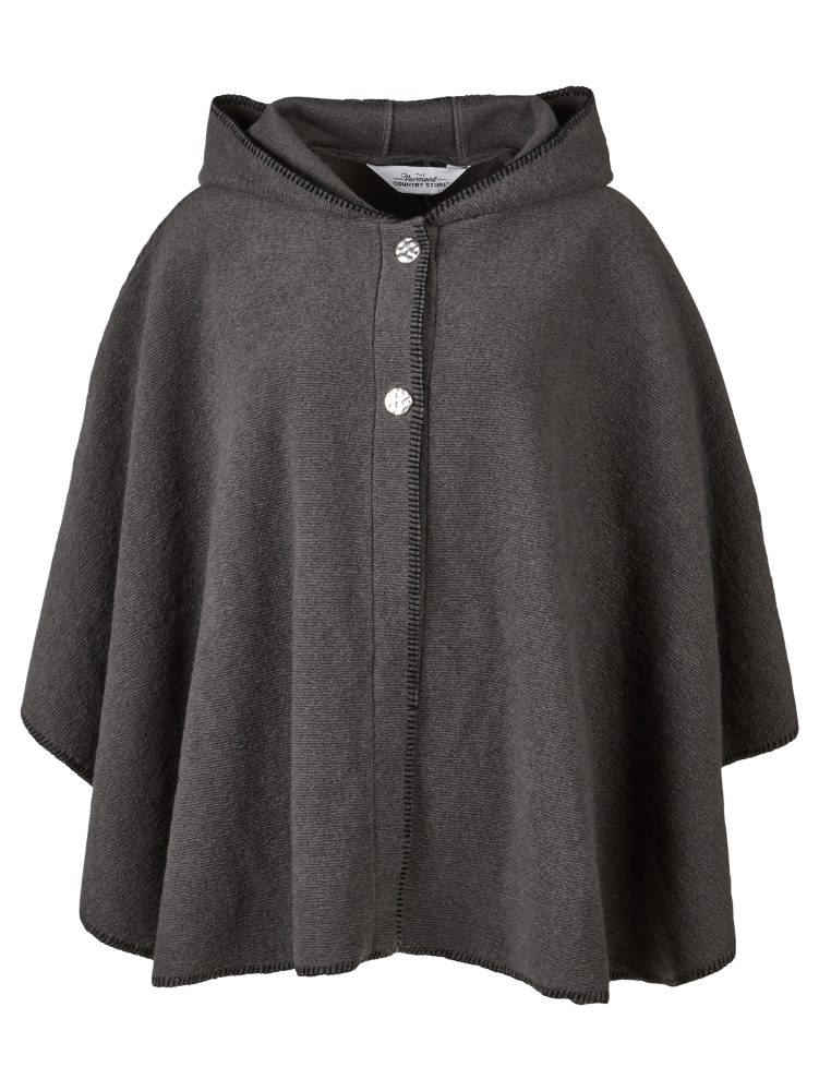 You're going to love this cape! It's designed with an easy silhouette and soft drape for a relaxed fit that slips over cold-weather clothing. It also has stitched seams under each arm to keep the cape in place yet allow freedom of movement—two silver-tone buttons add further closure. And the hood will be there for you to flip up in case of wind, rain, or snow.