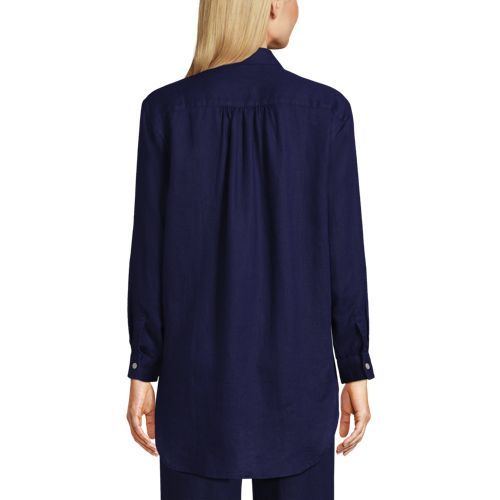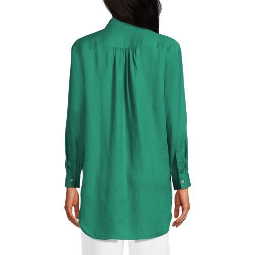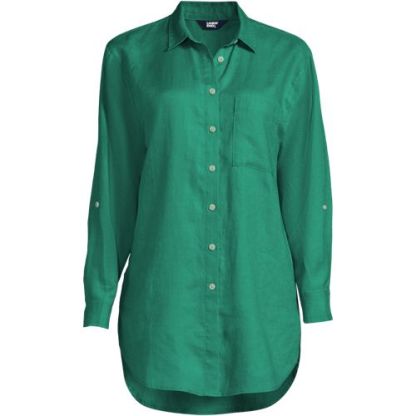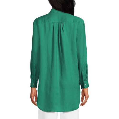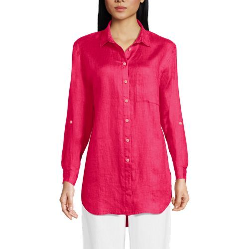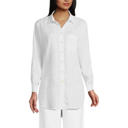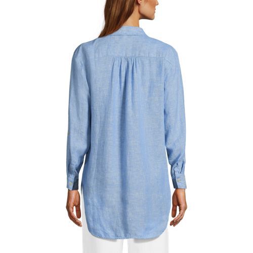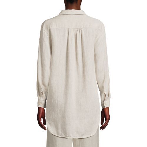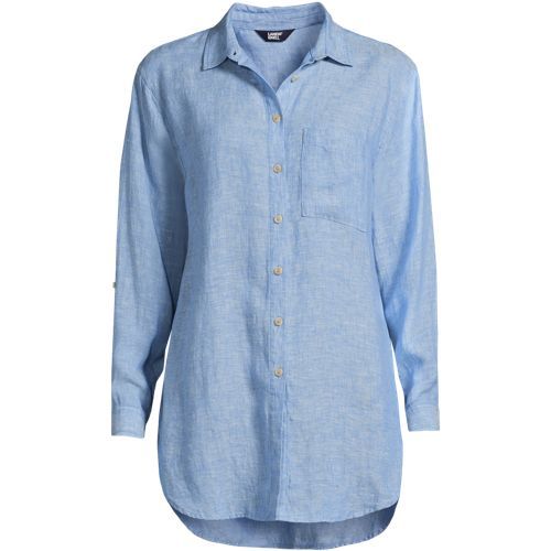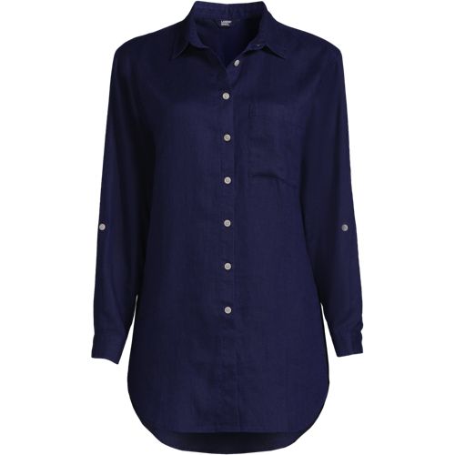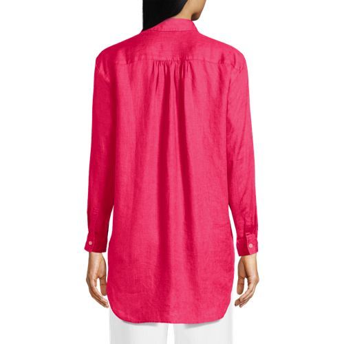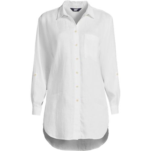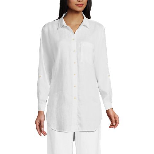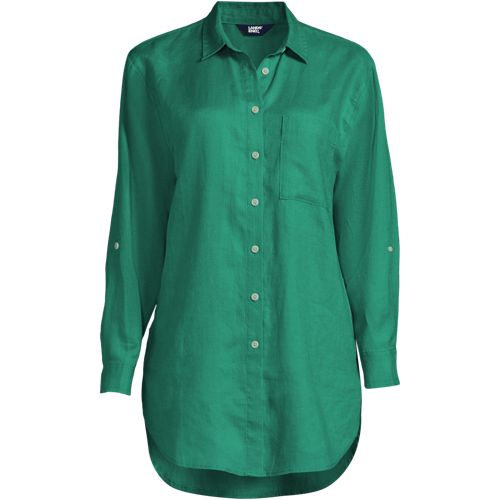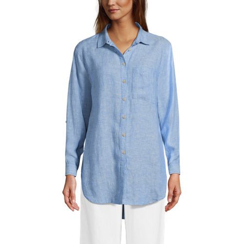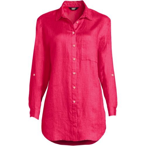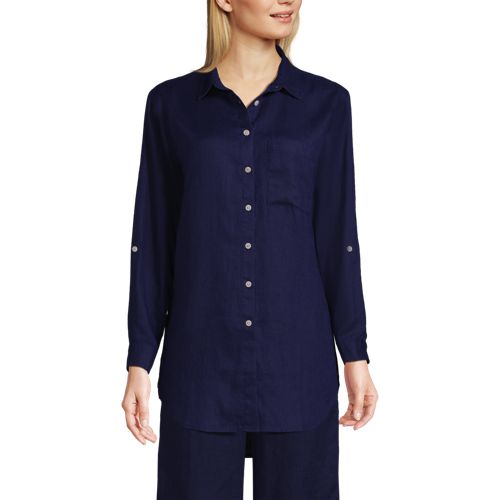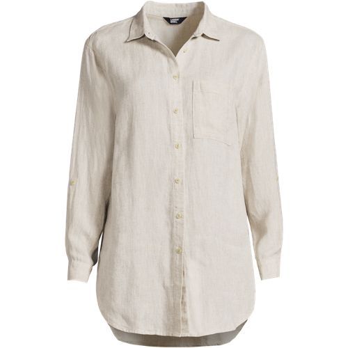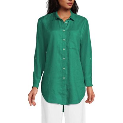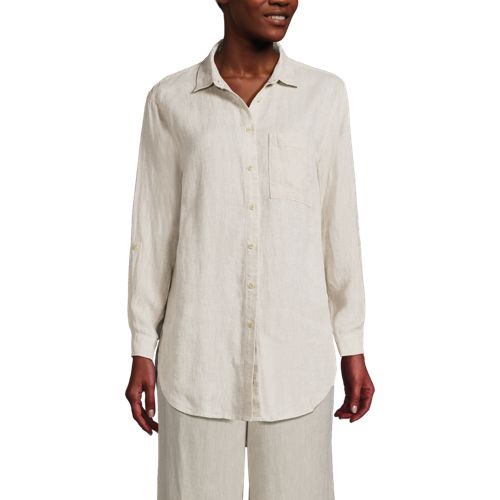 Made from 100% linen, it’s cool and breathable. Plus, the oversized fit and tunic length make it comfortable and stylish. The adjustable roll-sleeves give you the option to cuff or wear unrolled. It’s the perfect shirt to dress up or down.