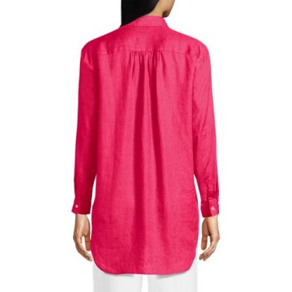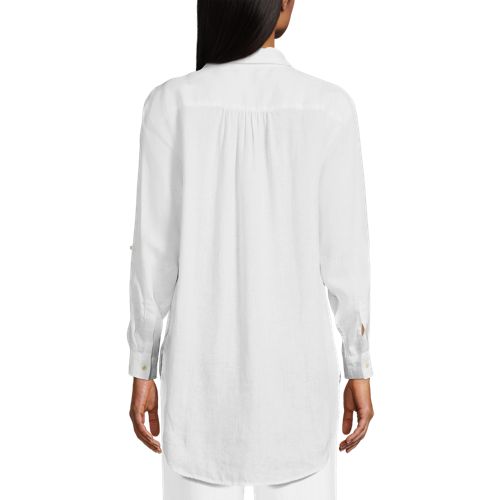 Women's Linen Roll Sleeve Oversized Relaxed Tunic Top