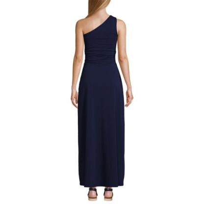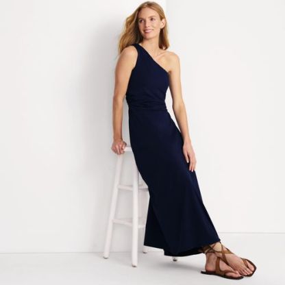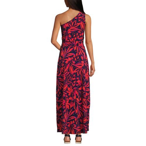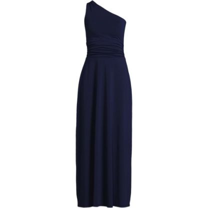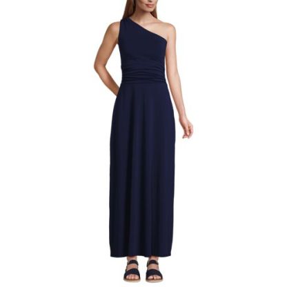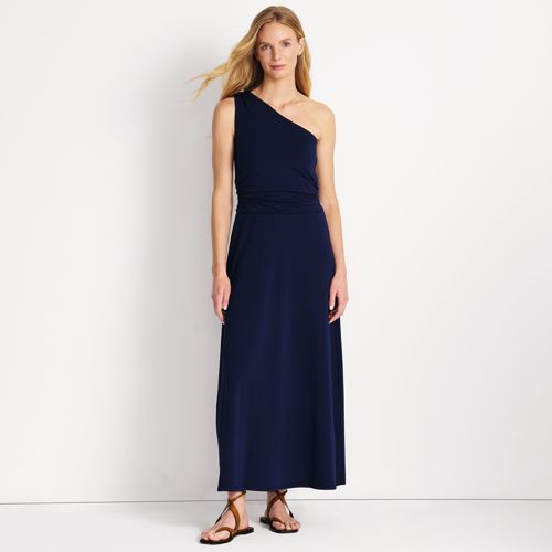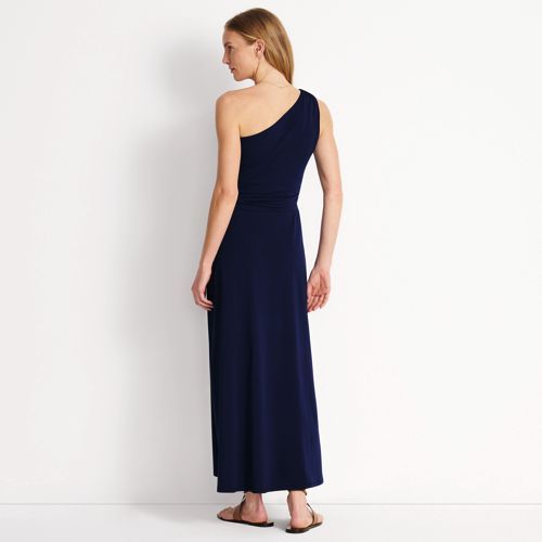 Choose this dress for a special event to feel your most glamorous – without a second thought. This one-shoulder dress is designed with a built-in shelf bra and reinforced stitching on the shoulder. A pull-on style with side-shirred seams leads to a maxi-length skirt to follow your every move. Stay comfortably confident all evening long, and by all means, accept the invitation.