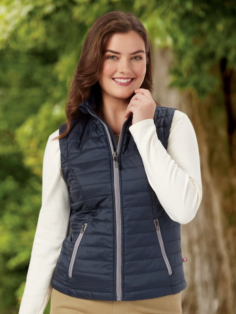 You'll truly enjoy the comfort of this packable quilted vest, with a shell made from recycled plastic bottles! Ultra-lightweight PrimaLoft® Silver insulation provides superior warmth, is water-resistant, and lets excess heat and moisture escape. Princess seams create a puffer vest with a flattering silhouette. Zip this vest into our Packable Quilted Puffer Jacket for a great 3-in-1 option, too!