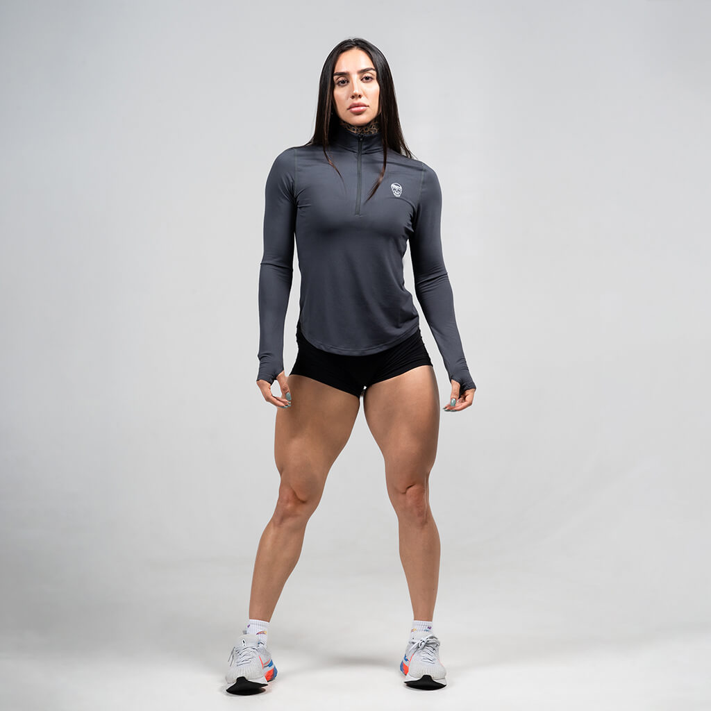 This Gymreapers Women's Quarter Zip offers a relaxed fit and breathable fabric, perfect for any activity or training. Designed with a blend of spandex and polyester, it ensures superior comfort, while the reflective logos provide easy visibility. This moisture-wicking shirt will become your go-to for optimal performance and all-day comfort.