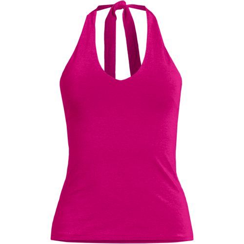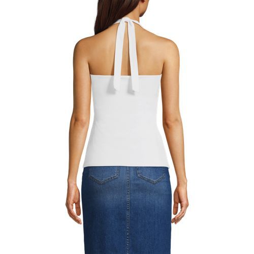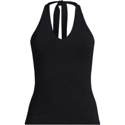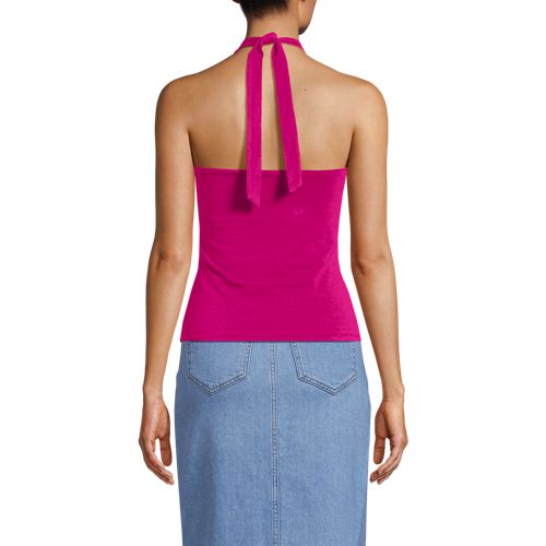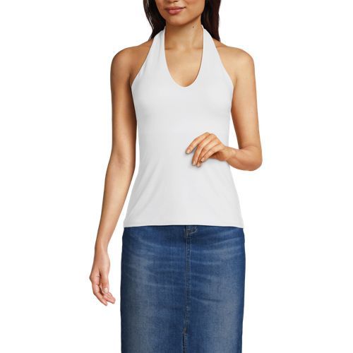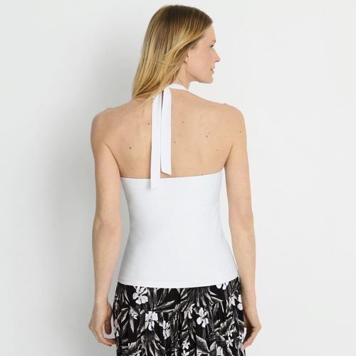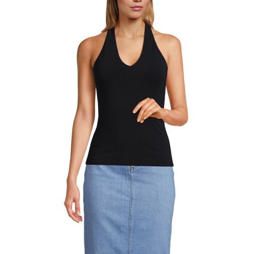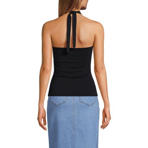This fitted halter tank is made of double layered lightweight jersey with LYCRA® ADAPTIV fiber for a smoothing appearance, and still holds its shape after a day of wear. Just hang it at the end of the day and it’s ready to wear again tomorrow. It’s great on its own when the weather heats up and can easily be layered with a jean jacket or light sweater. Plus, the adjustable halter style makes this tank a little more elevated for date night or other special occasions. The built in shelf bra with removable cups allows you to wear with or without a bra and still feel supported and comfortable.