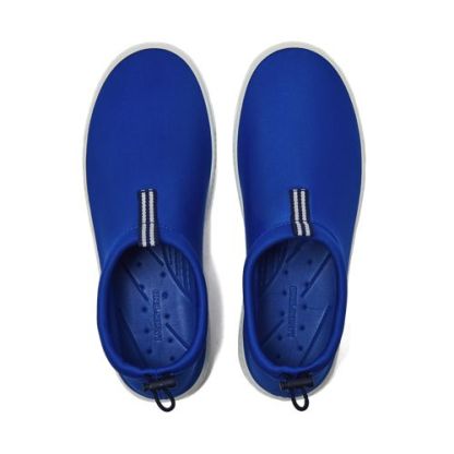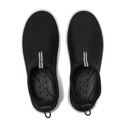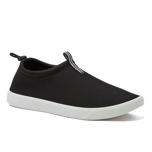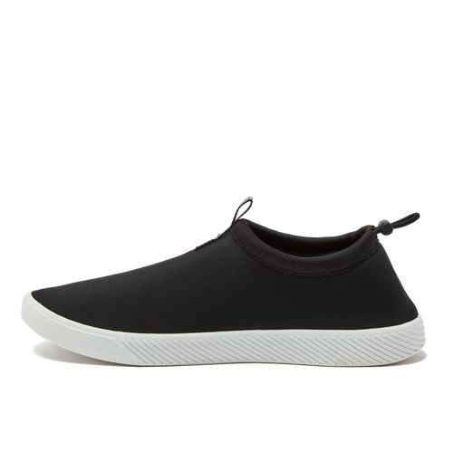 Our new water and swim shoes – classic but with a sporty, modern style twist. Quick dry neoprene makes them practical for protecting your feet while swimming at the beach or pool, and for boating. An adjustable bungee cord with a lock at the heel keeps them on securely. The rubber outsole has perforated drainage holes, reducing dry times. Frustrated with water shoes that are difficult to get on and off? Problem solved with our easy entry design. This summer, slip on shoes just don’t get more practical.
