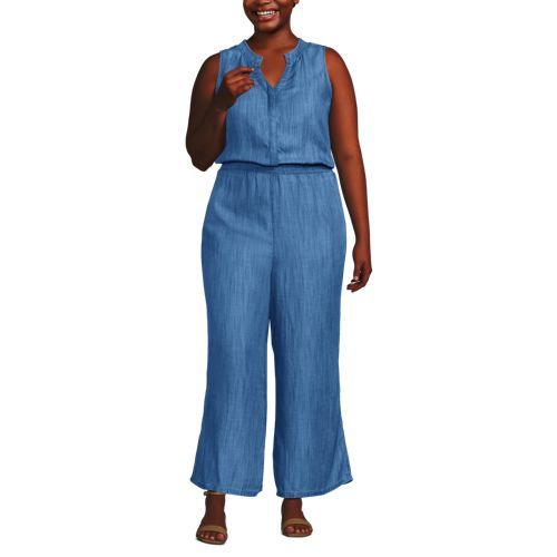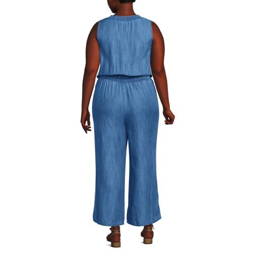 Women's Plus Size TENCEL™ Fiber Sleeveless Smocked Wide Leg Jumpsuit