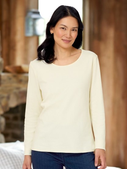 If you're like us, a crewneck tee is a year-round staple you can't live without, and this one might be the most comfortable crewneck you'll ever wear! Ours are made of American-grown long-staple cotton, a stronger, more durable cotton that keeps its shape and color—wash after wash. It feels smooth and soft—inside and out—and fits right. It's not too loose or tight, so you can wear it alone or as a layer under sweaters, jackets, and sweatshirts. Runs large.