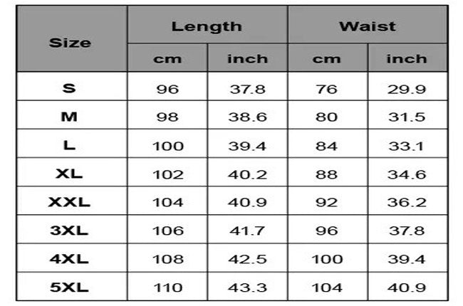 Tops and Pants Size Chart: